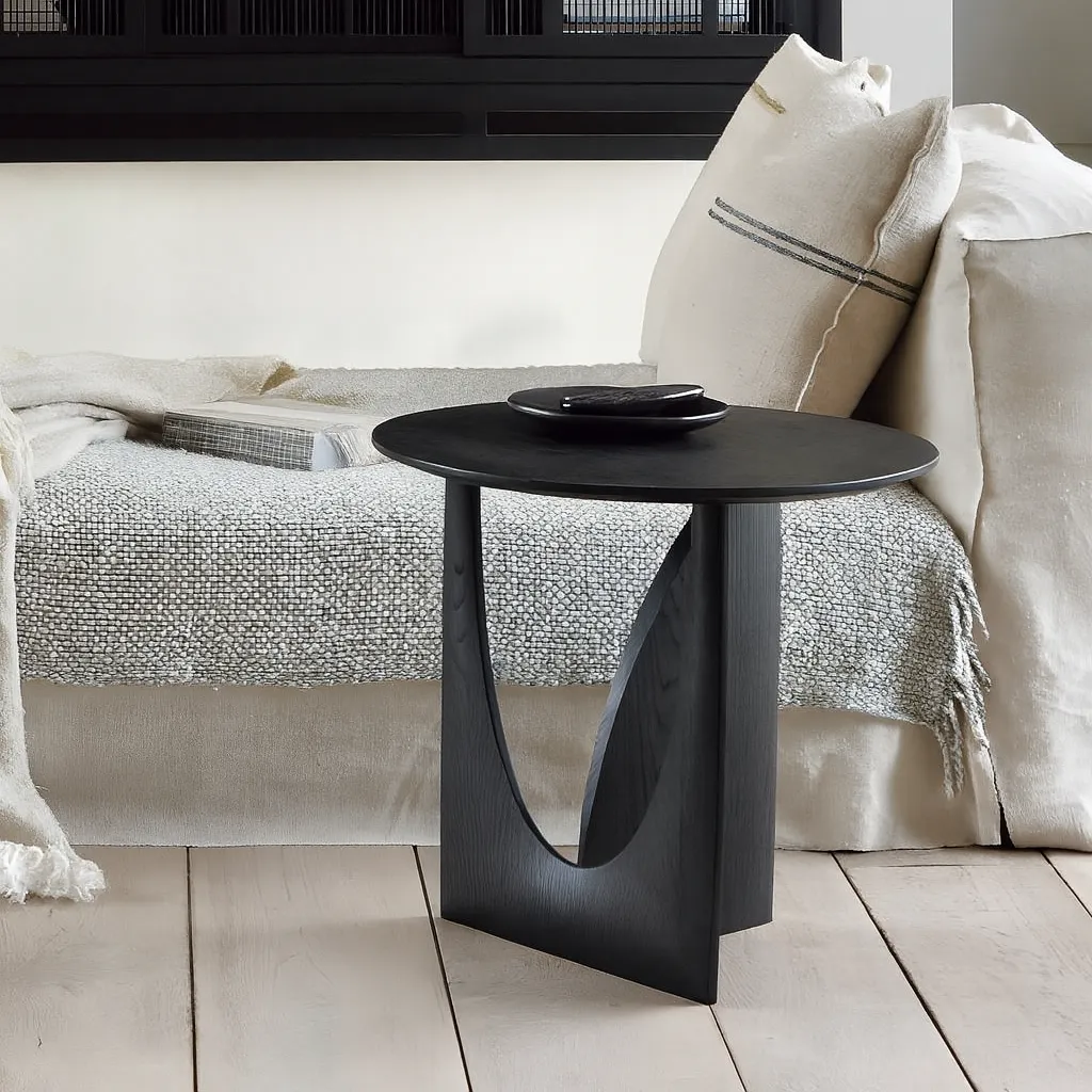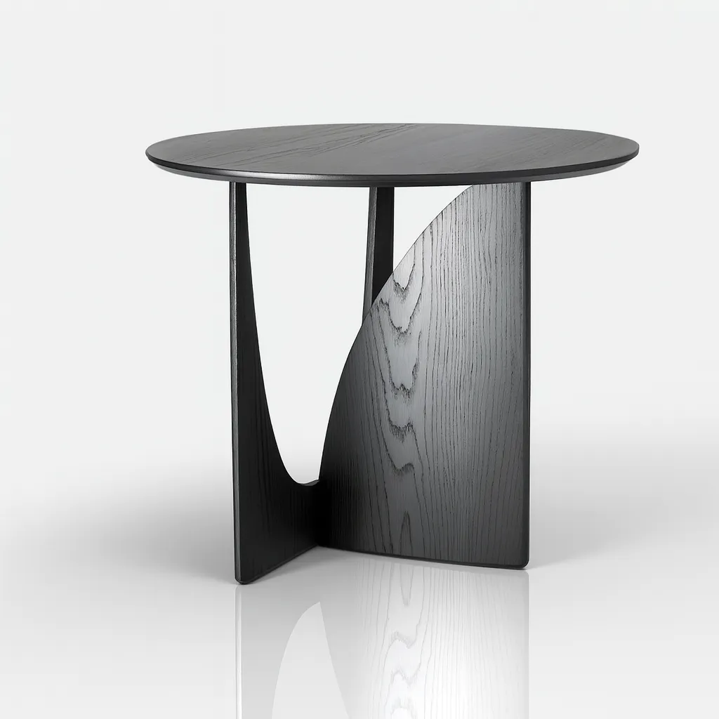 This modern side table features a striking round top crafted from solid wood with a deep black finish. Its distinctive sculptural U-shaped base adds a bold artistic touch, making it more than just a functional piece it’s also a statement of style. Perfect as a side table in living rooms, bedrooms, or offices, it blends effortlessly with both contemporary and minimalist interiors.