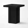 Square black wooden side table with a bold block base, perfect for modern minimalist interiors.