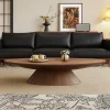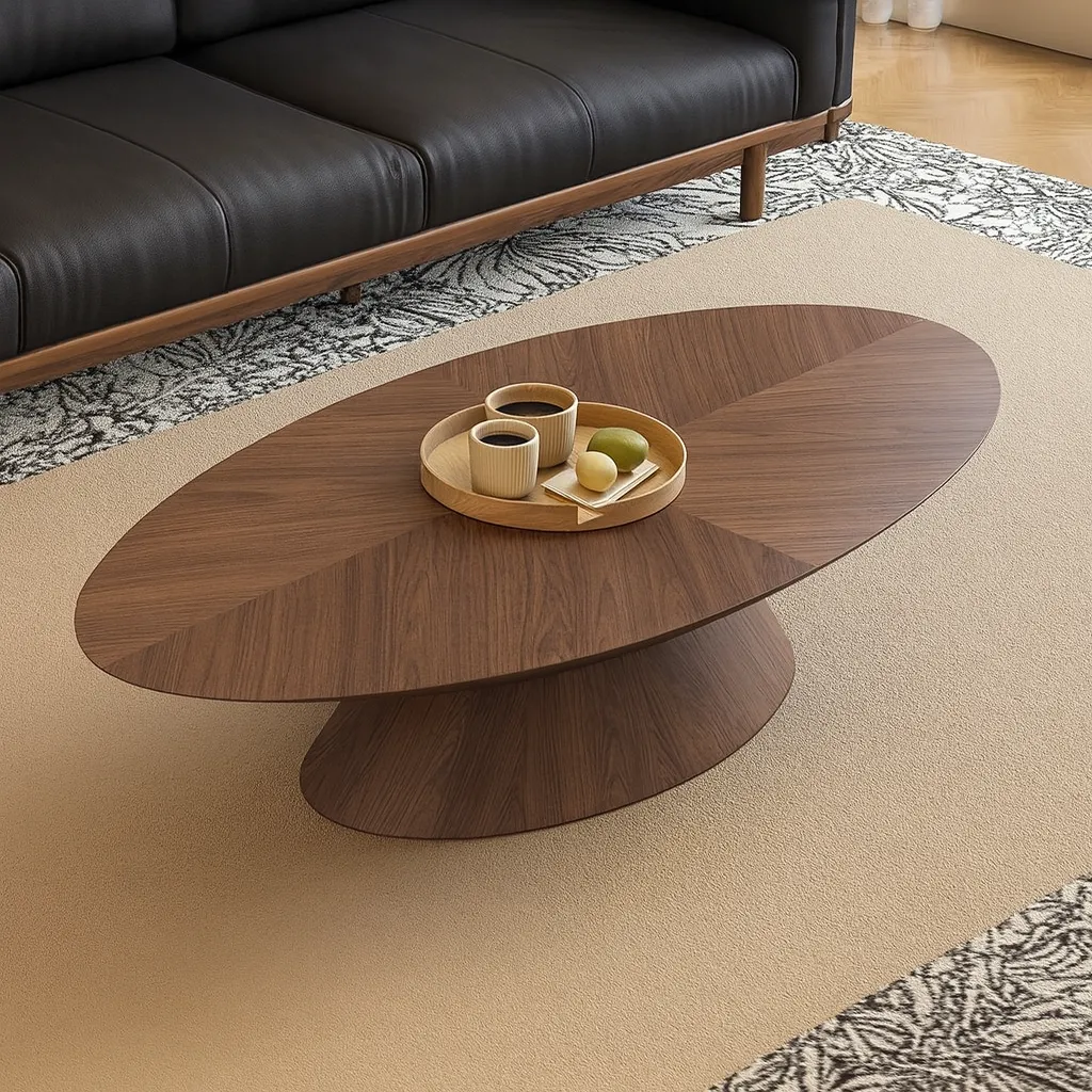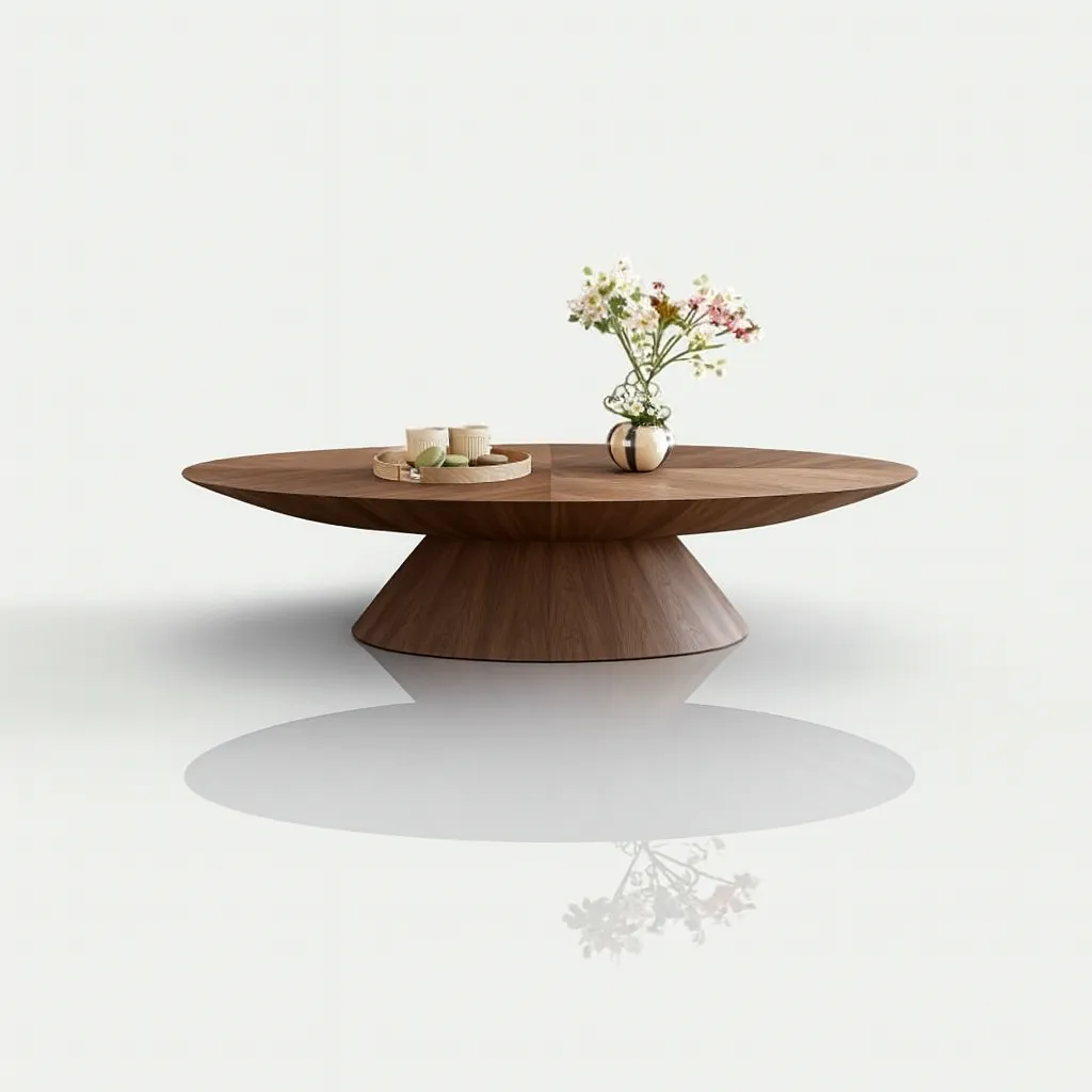 Modern Round Wooden Coffee Table With Wide Flared Base For Living Room