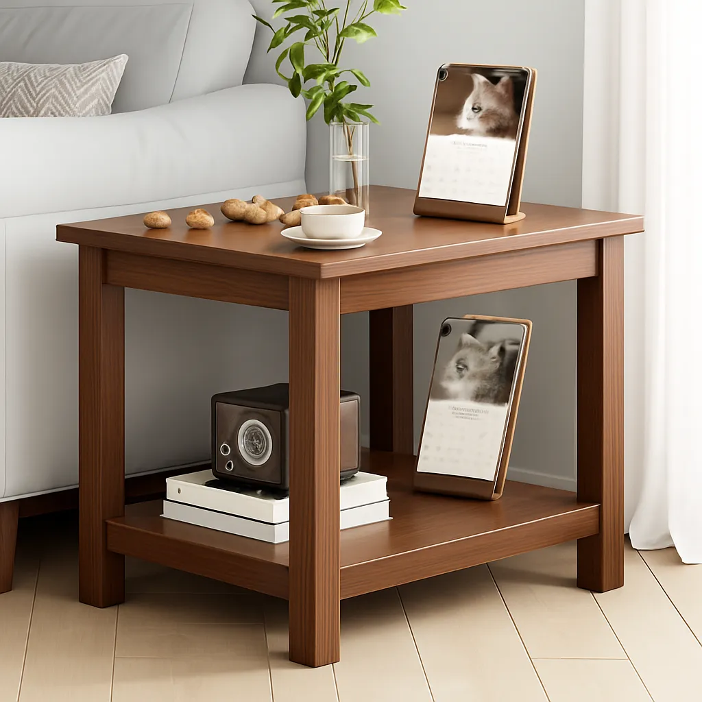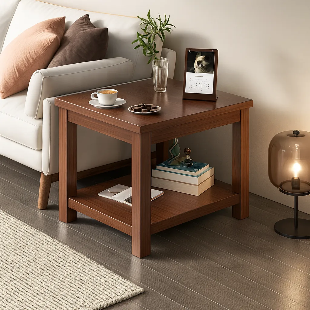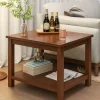 Modern Solid Wood Square Side Table With Bottom Shelf