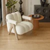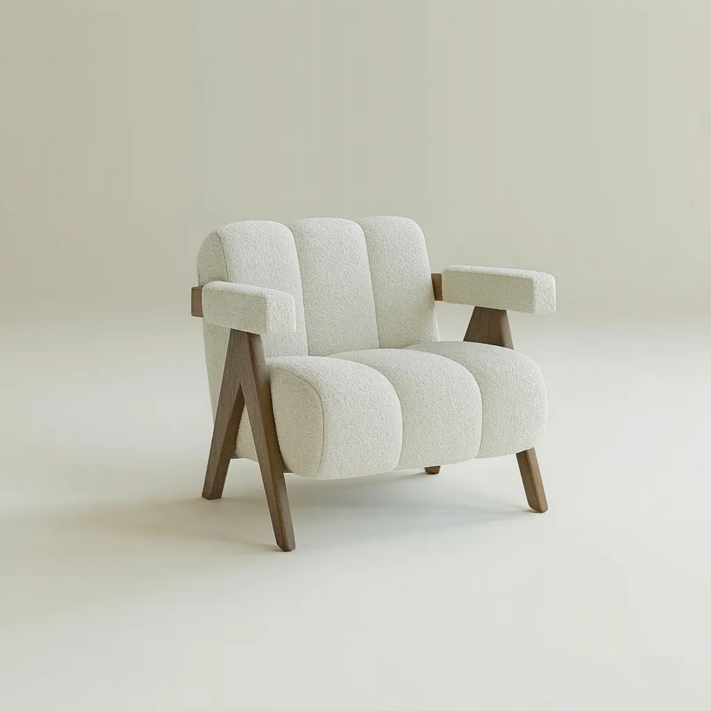 A stylish wooden armchair featuring a cushioned seat and backrest, designed for comfort and relaxation.