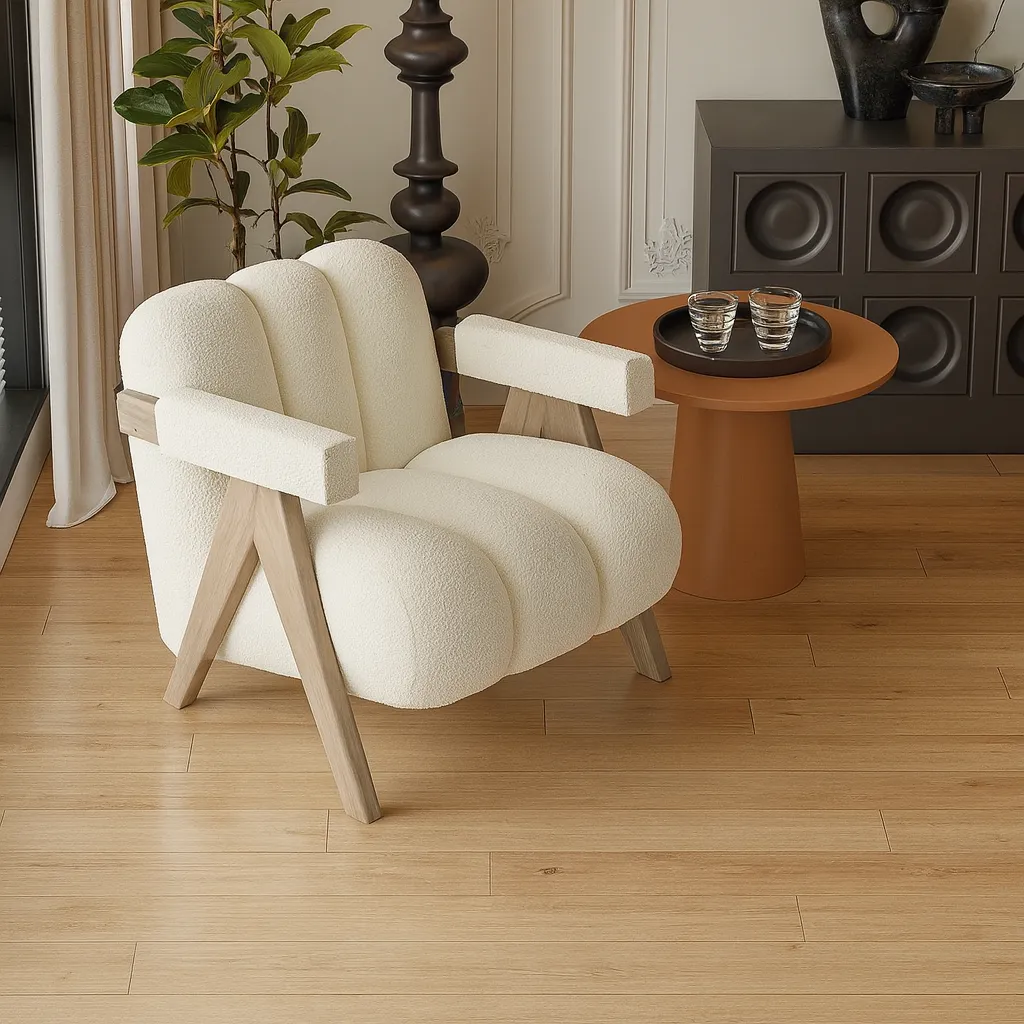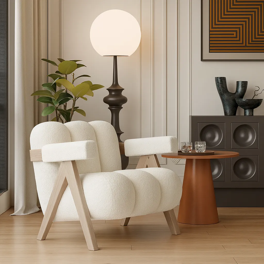 This modern wooden armchair combines sleek lines with a cozy upholstered seat and backrest, offering both durability and comfort. The solid wood frame provides strength and stability, while the soft cushioning ensures a relaxing seating experience. Its versatile design makes it suitable for living room, reading corner, or office lounge, adding a touch of contemporary elegance to any space.