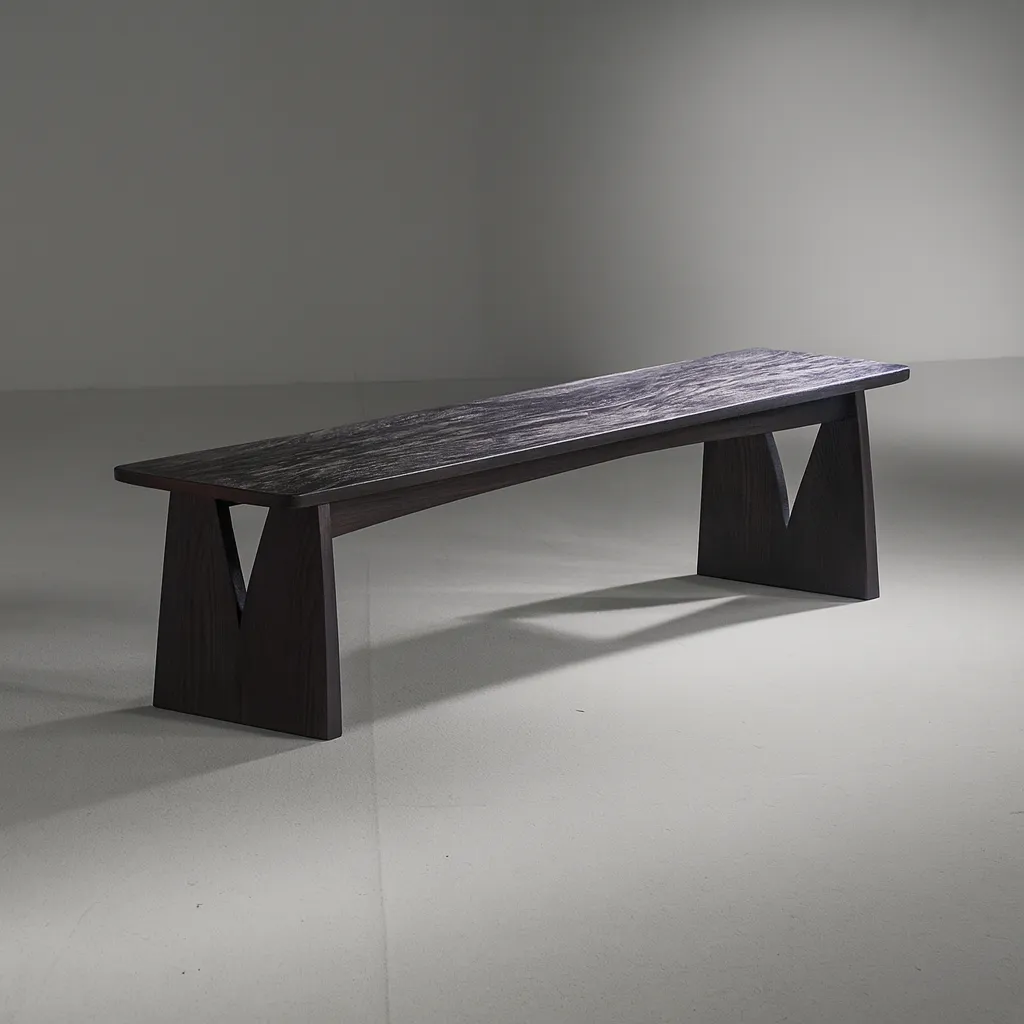 Sleek wooden bench with a distinctive base design, perfect for contemporary living spaces and versatile seating.