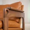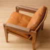 A contemporary lounge chair crafted with a solid wooden frame and soft cushioned seating for lasting comfort.